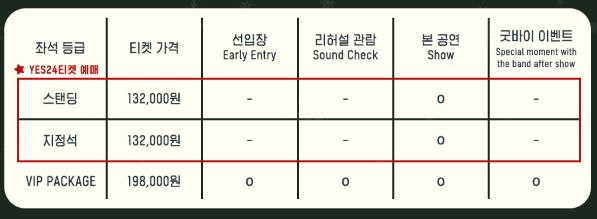 - (VIP PACKAGE의 번호를 제외한 101번부터 예매 가능)