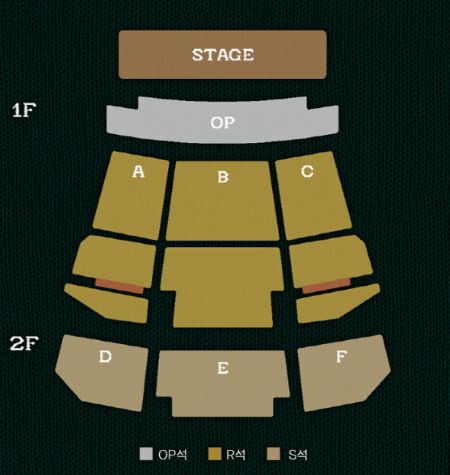 - 공연 장 1층 OP석 1열 ~ 3열과 A, B, C 구역 1열은 단차가 없습니다.