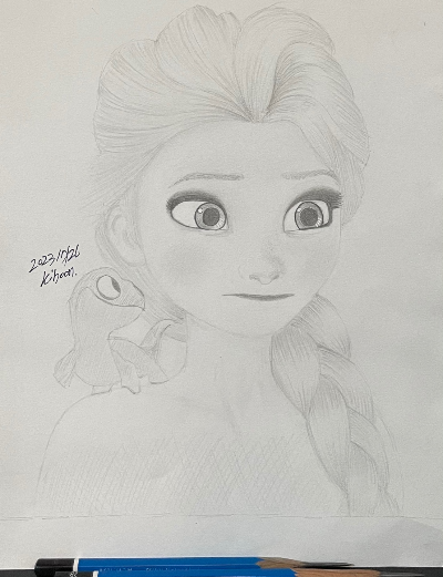 근데 사실은 제가 겨울왕국을 안봤어요...ㅠㅠㅋㅋㅋ 안 봤는데, 무슨 캐릭터를 그려볼까 검색해 보다가 겨울왕국 캐릭터들이 보였고 그중에 엘사라는 캐릭터를 보고 굉장히 그려보고 싶은 느낌이 들더라고요! 그런 김에 엘사라는 캐릭터도 알아보고.. 영화 겨울왕국에 대해서도 알아볼 수 있겠다 싶어서 그려봤습니다.