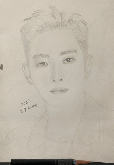 참고를 하고 그린 사진은 어두운 느낌이 많이 나는 주지훈의 사진이었는데 제가 그림 그리는 스타일이 연하고 부드럽게 그리는 걸 좋아하다 보니 느낌을 많이 살리지는 못한 거 같습니다. 그래서 다 그리고 보니까 엄청 부드럽고 순한 사람을 그려둔 거 같아요 최대한 어둡게 표현해보려고 했는데 안 하던 스타일로 그릴려니까 엄청 어중간하고 이상해져 가지고 그냥 늘 그리던 방식으로 그리자라는 생각으로 평소처럼 그렸습니다.